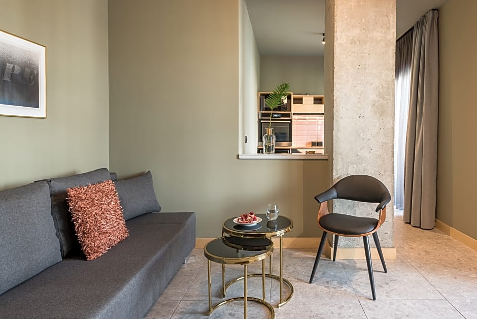 Featuring a balcony, this apartment includes a living area with a double sofa bed, a dining, area, and a fully equipped open-plan kitchen. The bathroom comes with a glass rainfall shower.